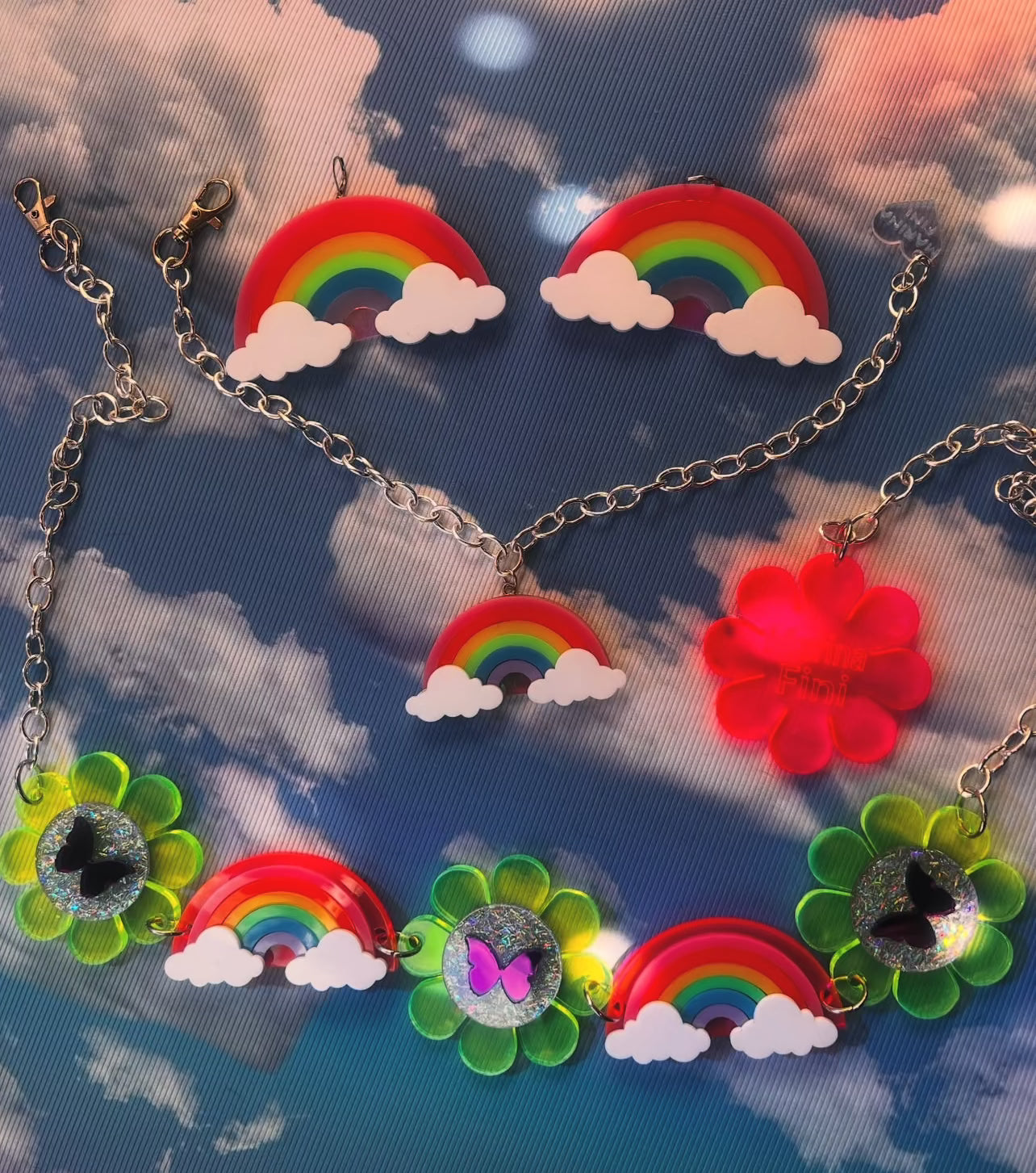 She makes all the art and jewelry you see here and more at the Rainbow Bath House. Full of magical unicorns and fairys, clouds and rainbows.In the southwest desert of Sedona, AZ.