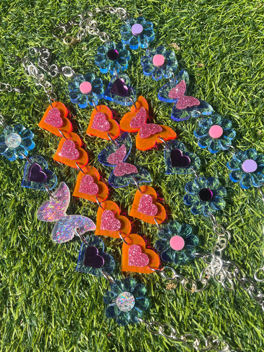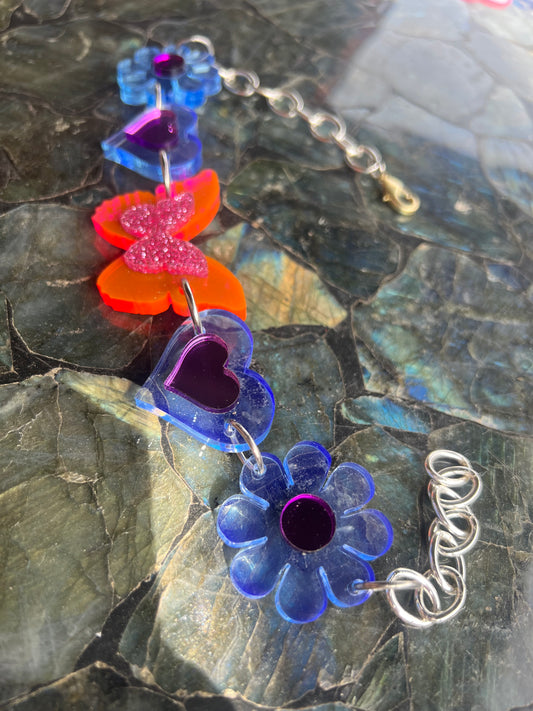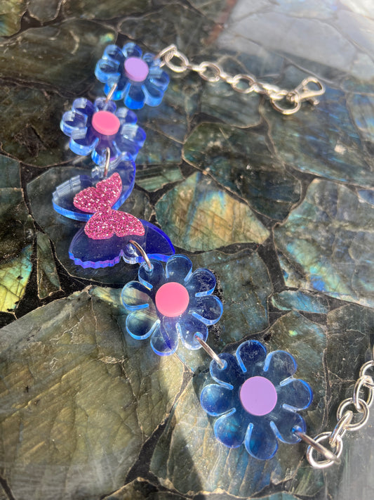 Black And Pink Mirrored Flower Power Butterfly Earrings