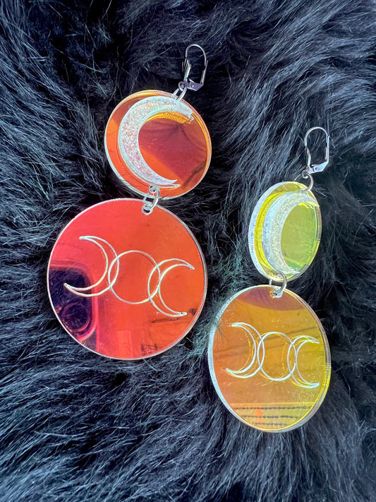 Holographic Triple Goddess Luna Earrings
