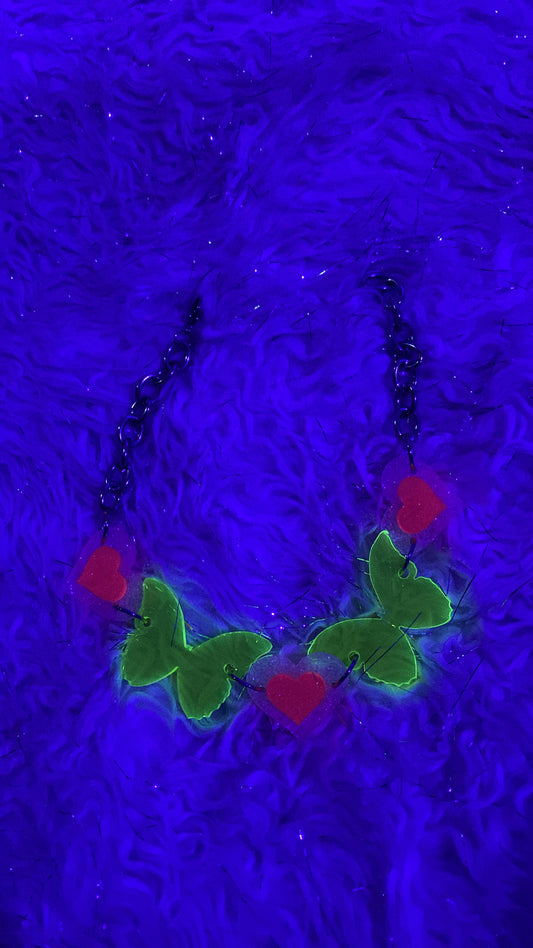 Neon Butterfly dreams collar 🦋💚 choker (one of a kind) uv reactive