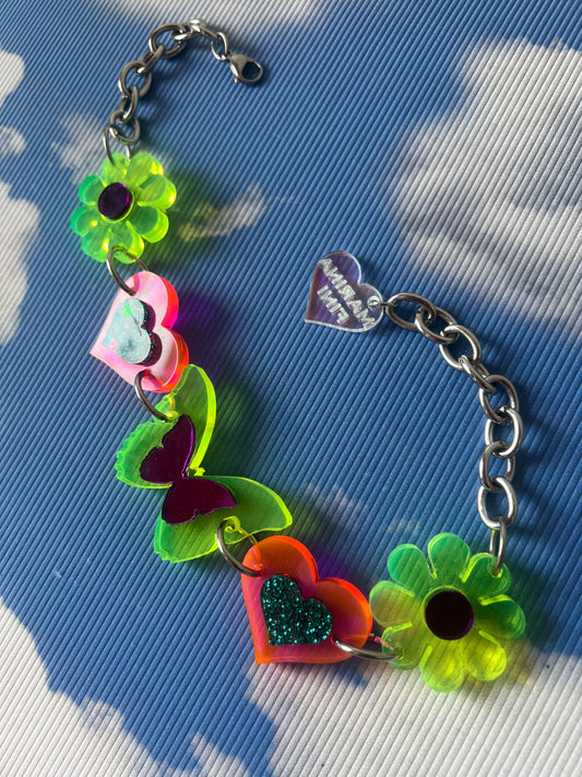 Neon Butterfly dreams Flower love π©·πΈπΌ Drip choker (one of a kind) uv reactive