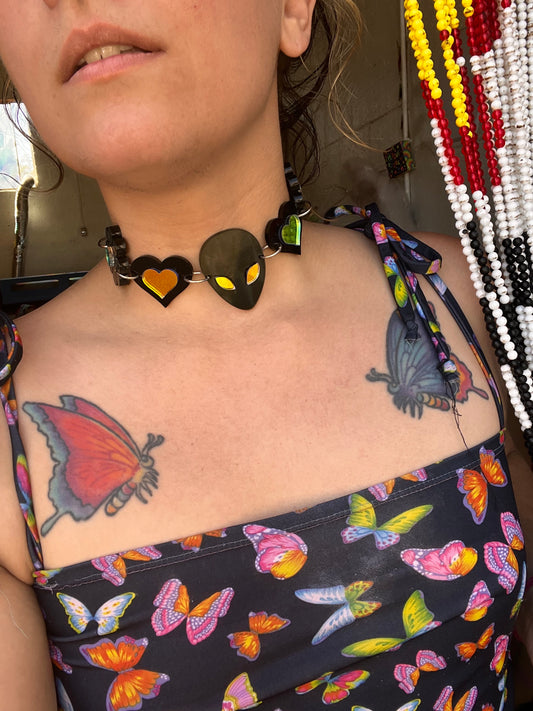 Alien love cyber goth 👽 neon Choker (one of a kind)