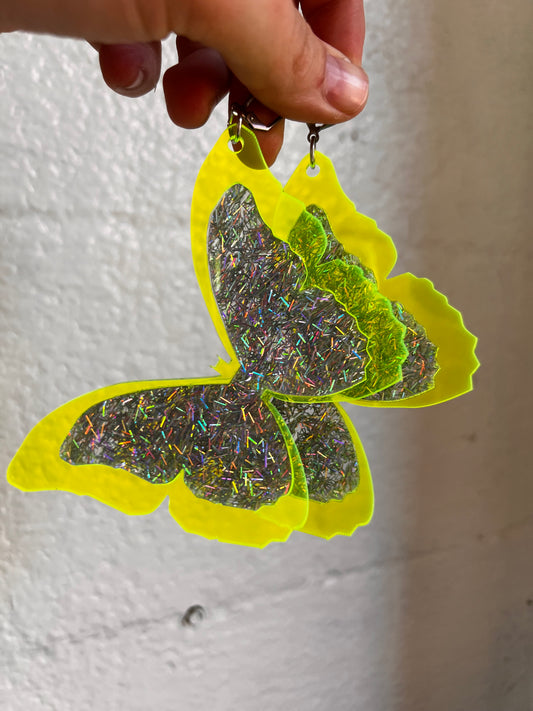 Neon Green & Glitter Butterfly Earrings 💚🦋💚