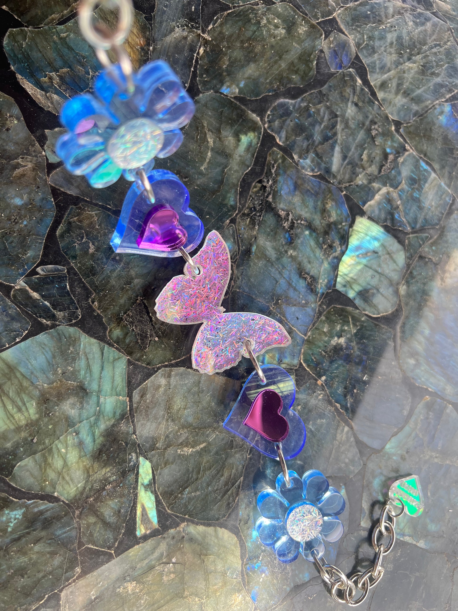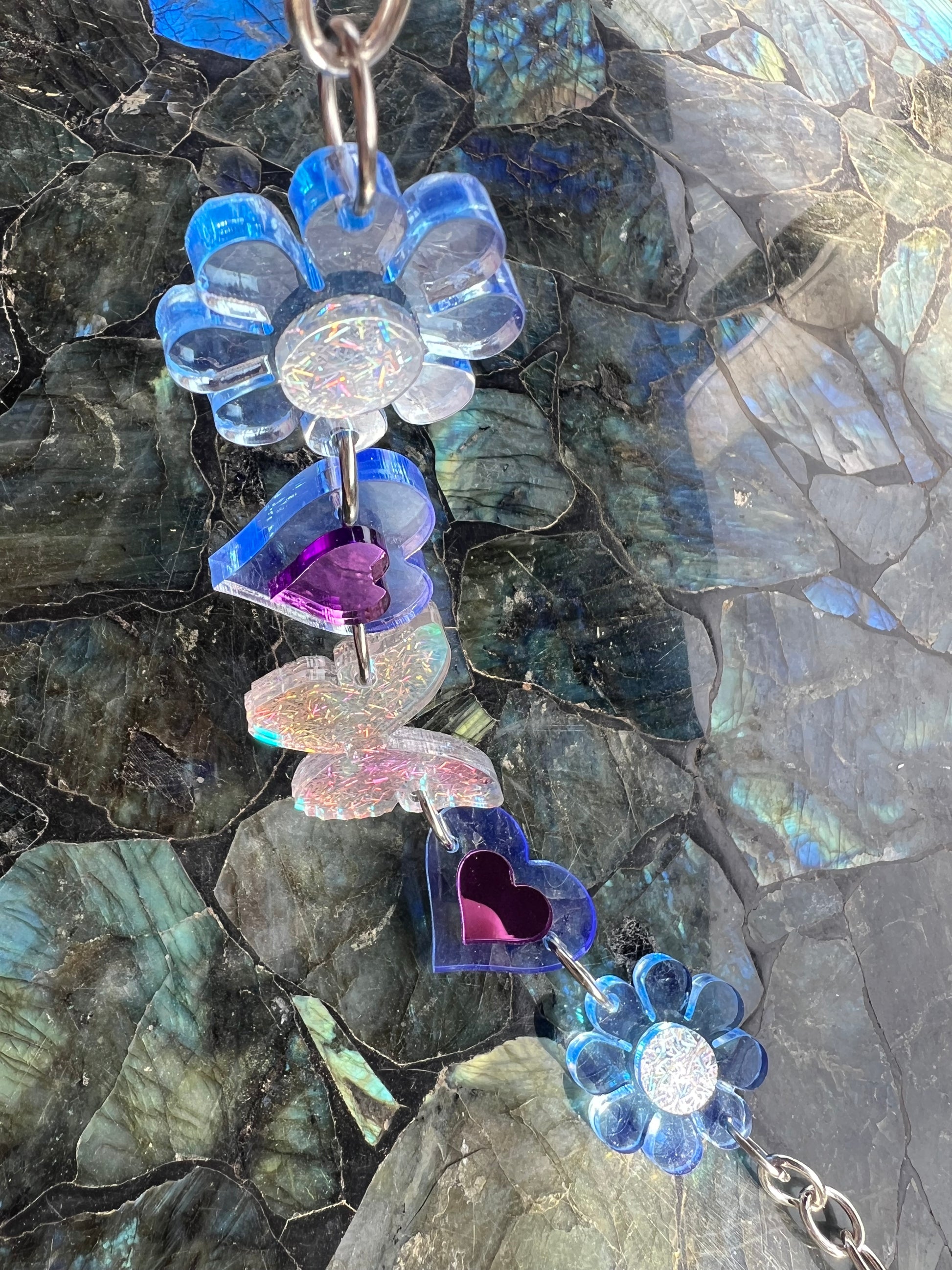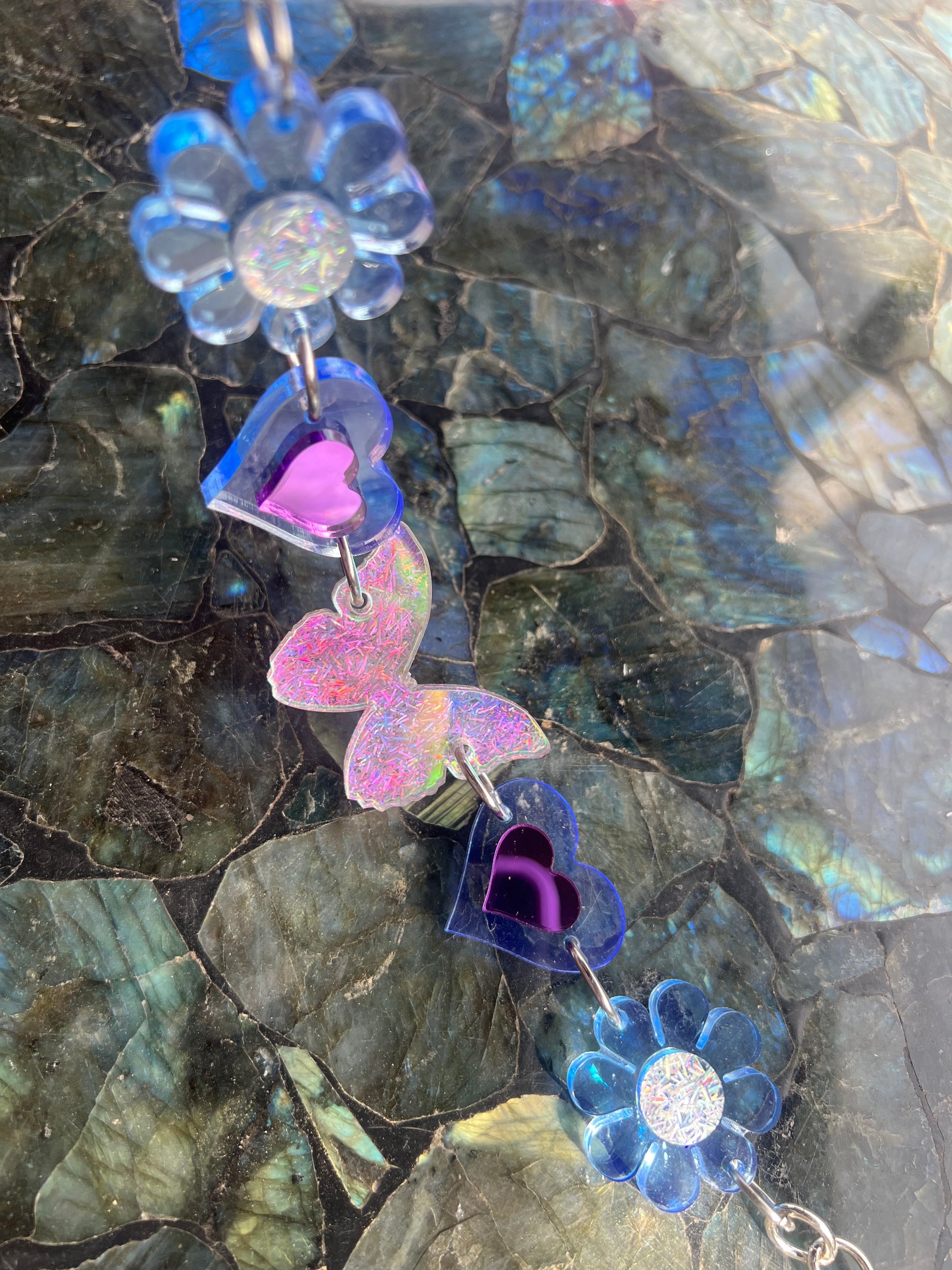 neon blue uv reactive plexiglass butterfly and flower choker with purple mirror accents 💜💜💜💜