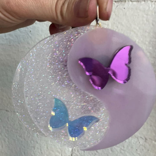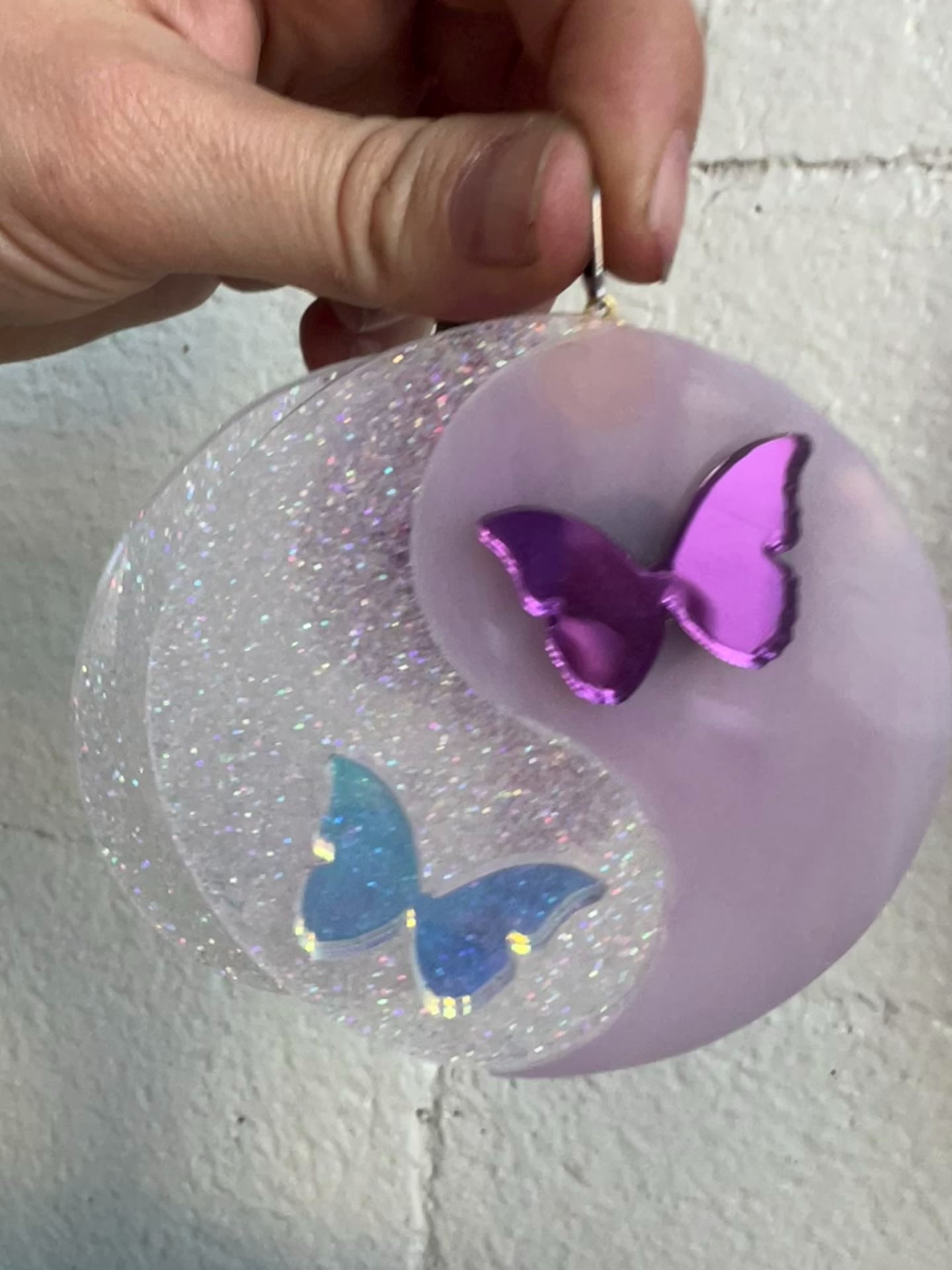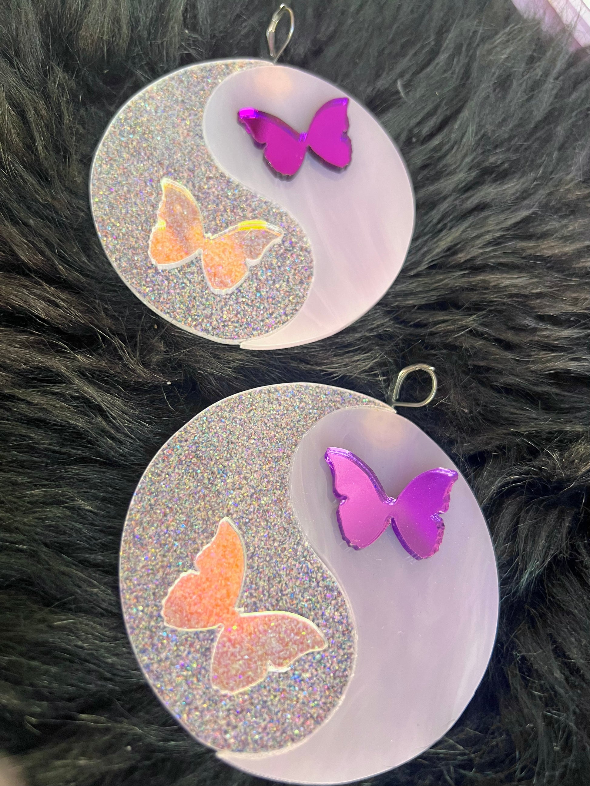 Lavender & white glitter plexi yin yangs with butterfly accents