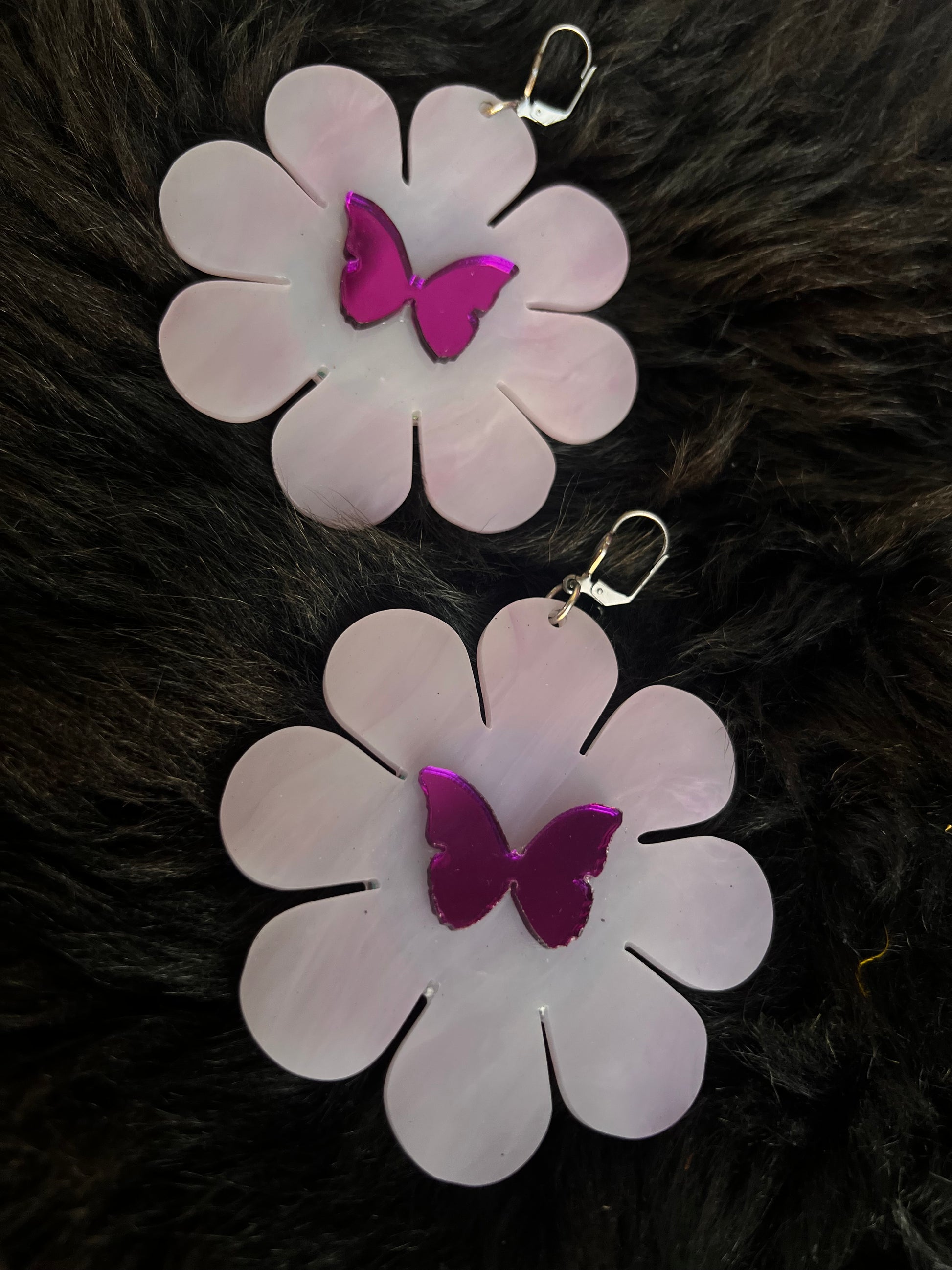 Lavender petals with holographic accents & a purple butterfly on the opposite side