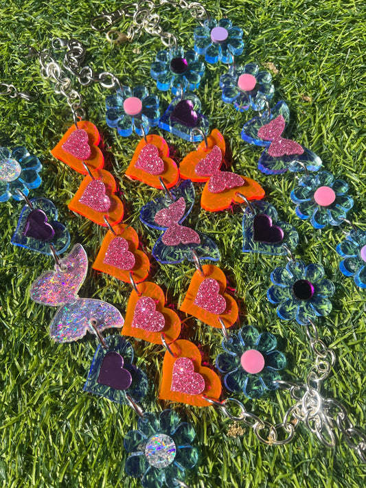 Neon Pink and Silver Sparkle Heart Love Choker