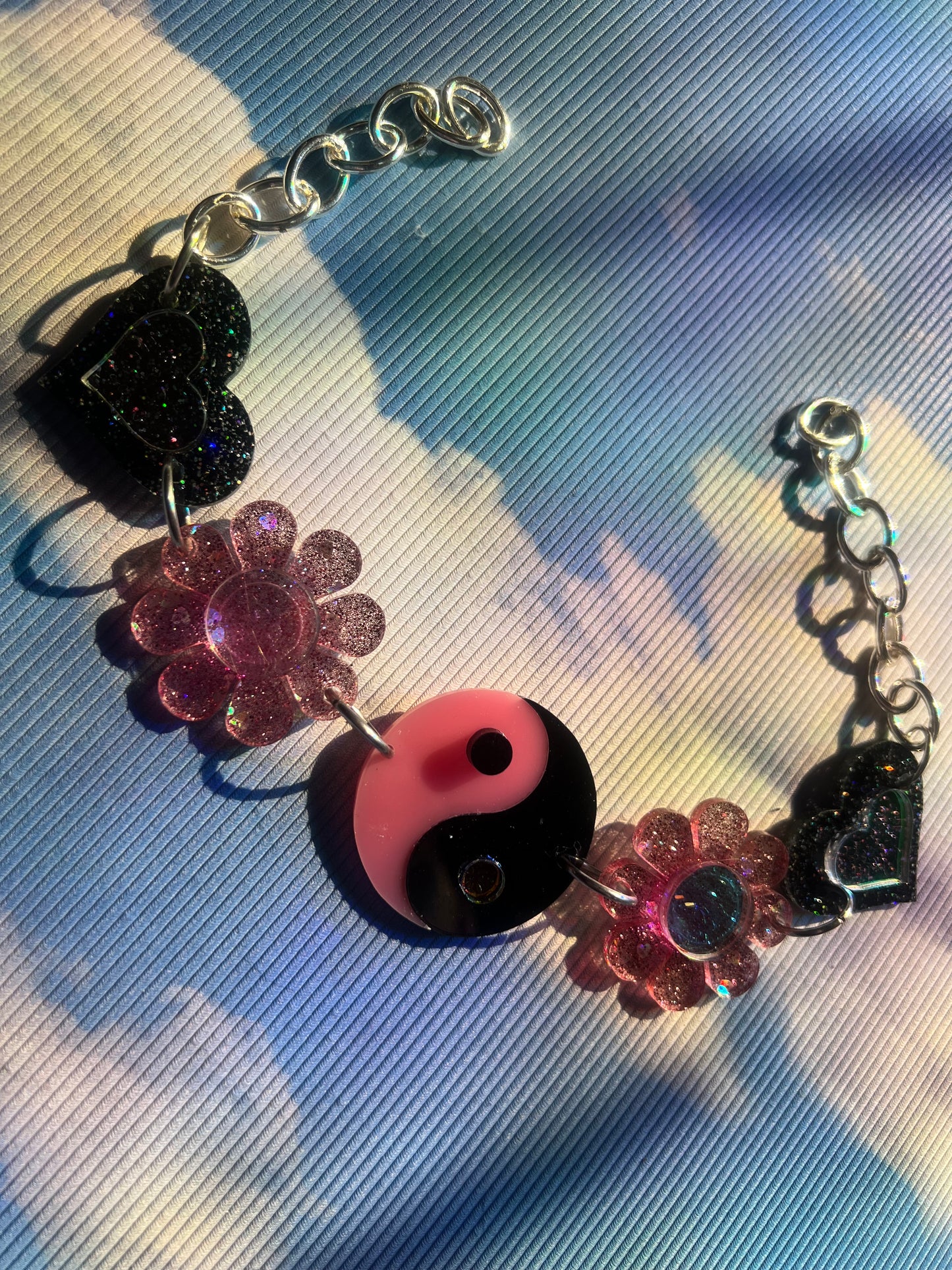 Barbie 🌸🖤☯️🖤🌸 Flower power Yin Yang Choker