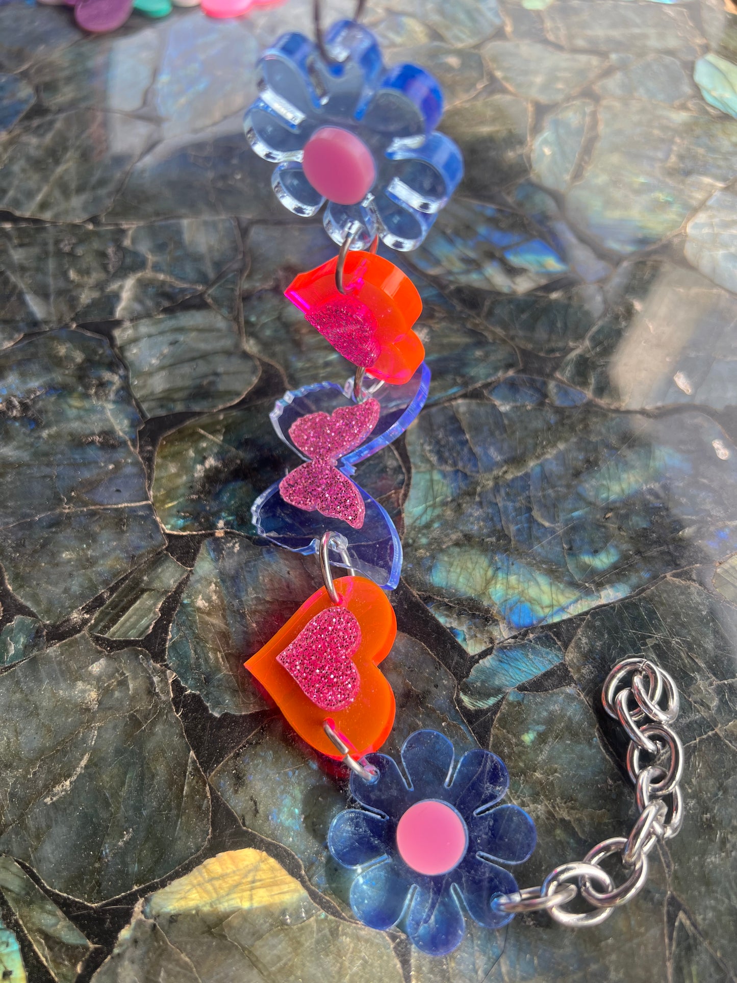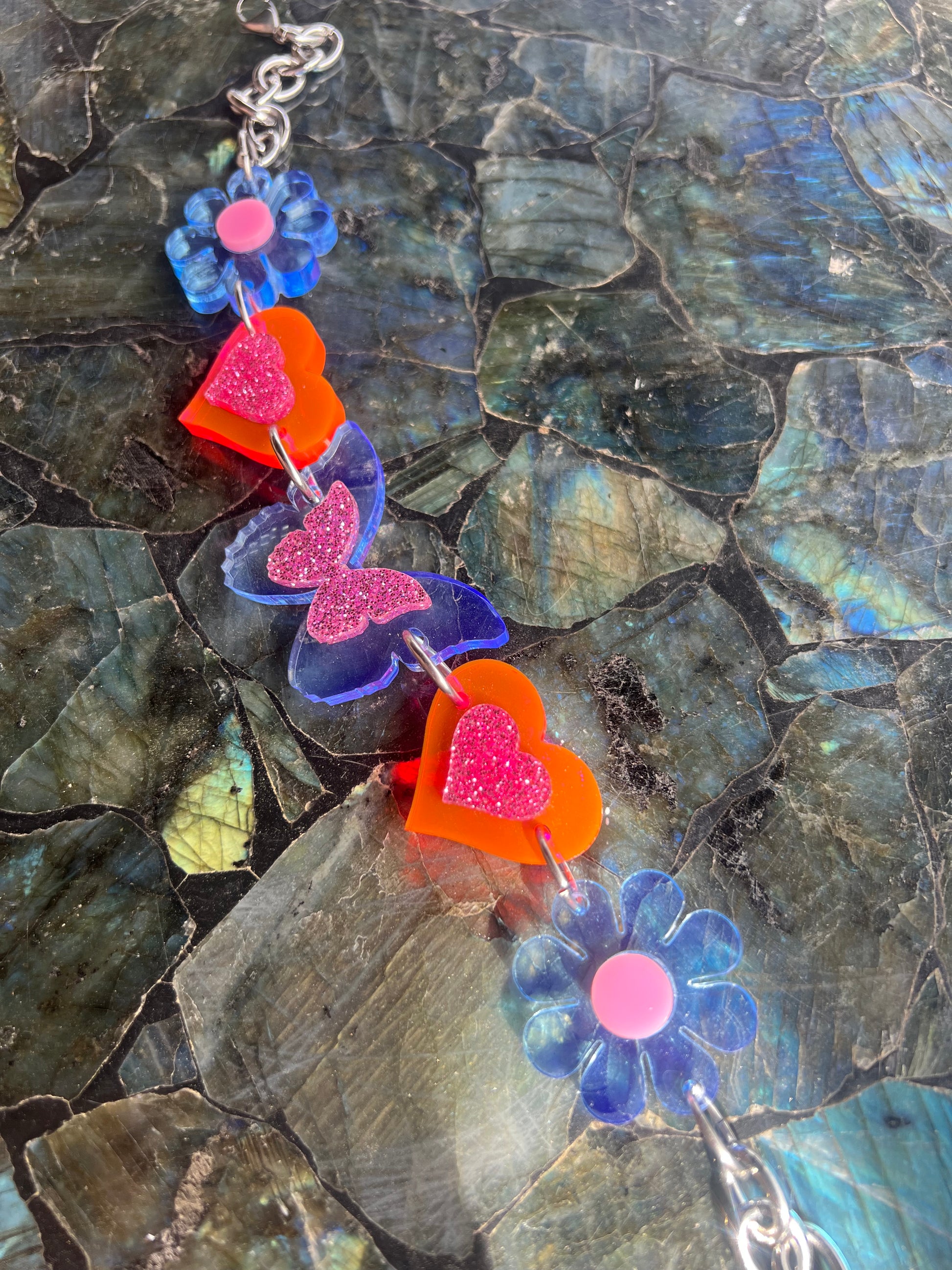 neon blue uv reactive plexiglass butterfly and flower choker with purple mirror accents 💜💜💜💜
