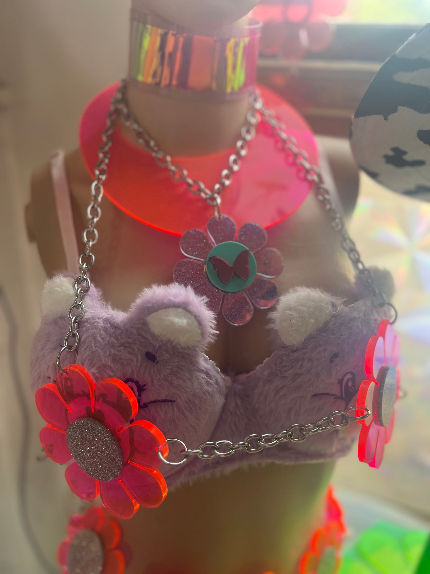 Neon Pink Flower Power Bra (made to order) 🌸🌸🌸