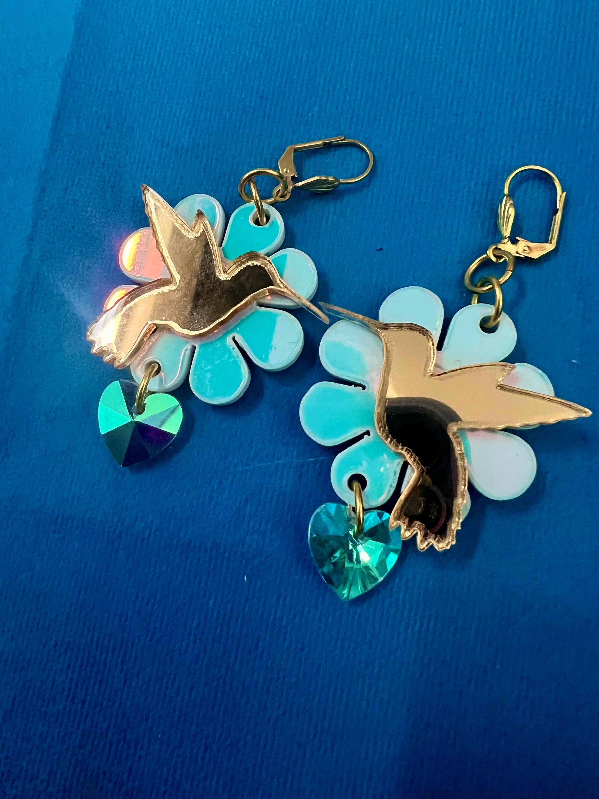 Flower loving 🌸 Hummingbird Earrings (one of a kind) 💜