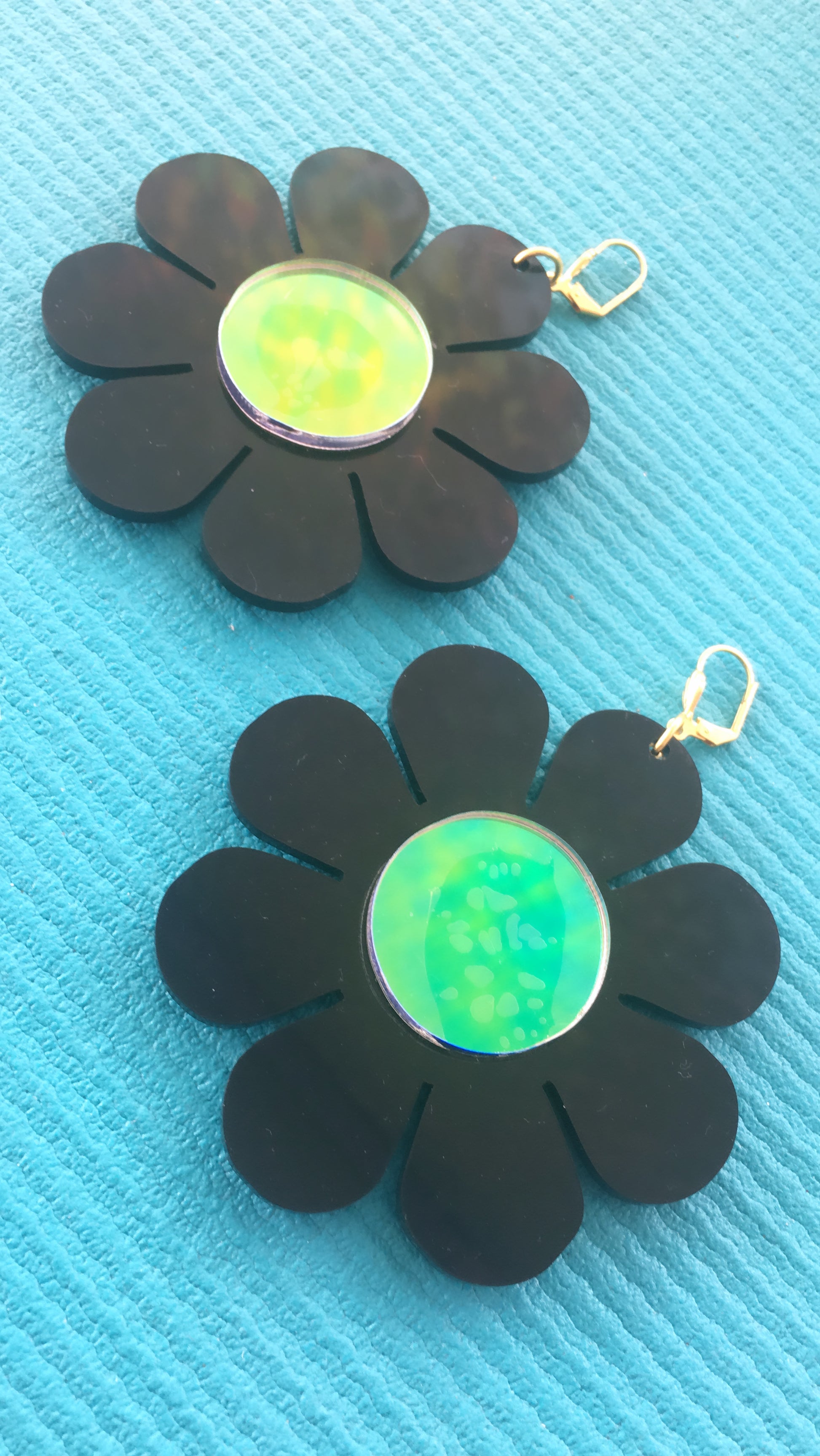 Black plexi petals with Holographic center and Pink Mirrored Butterfly.