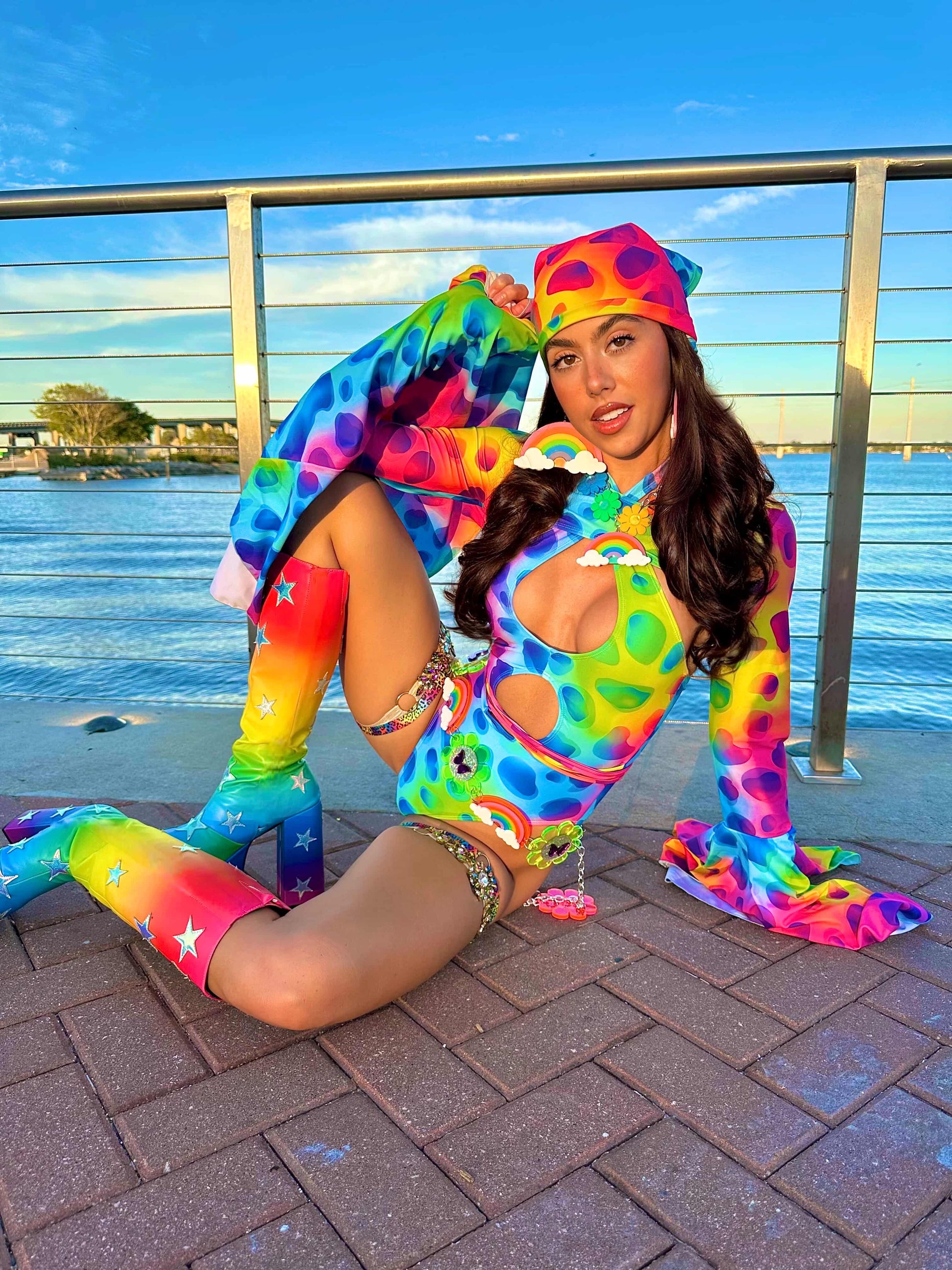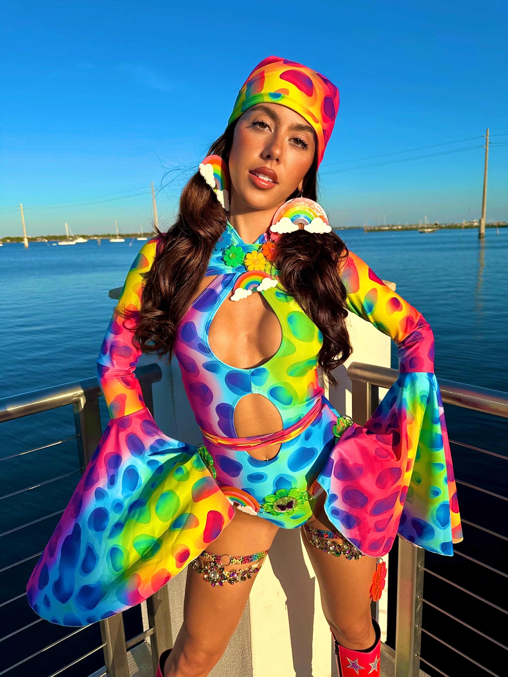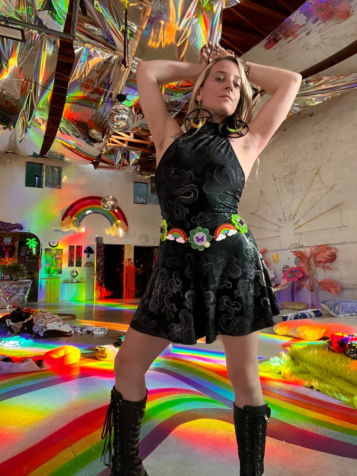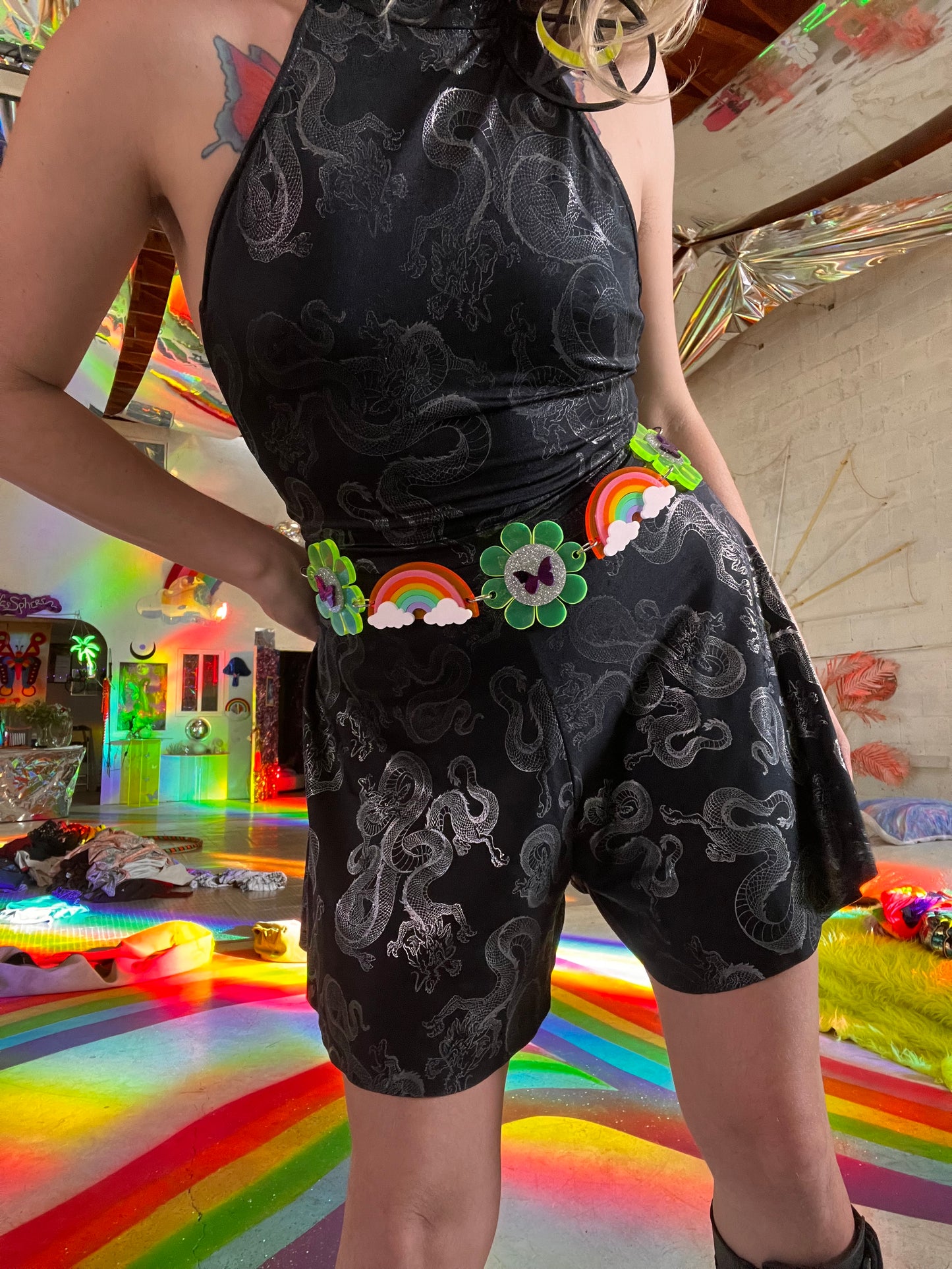 One of a kind flower power rainbow belt