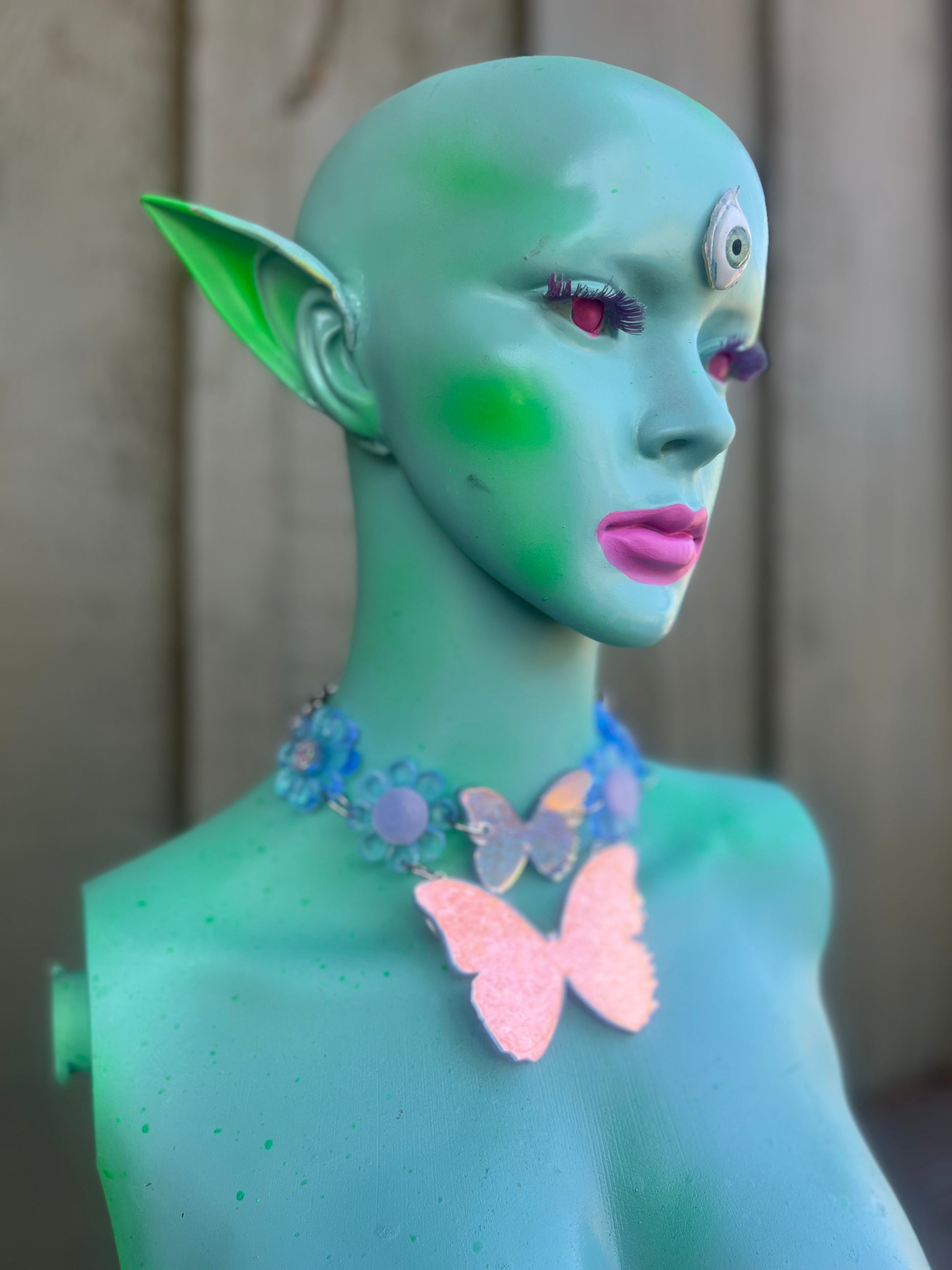 flower power choker with Holographic glitter butterfly accents cascading in size