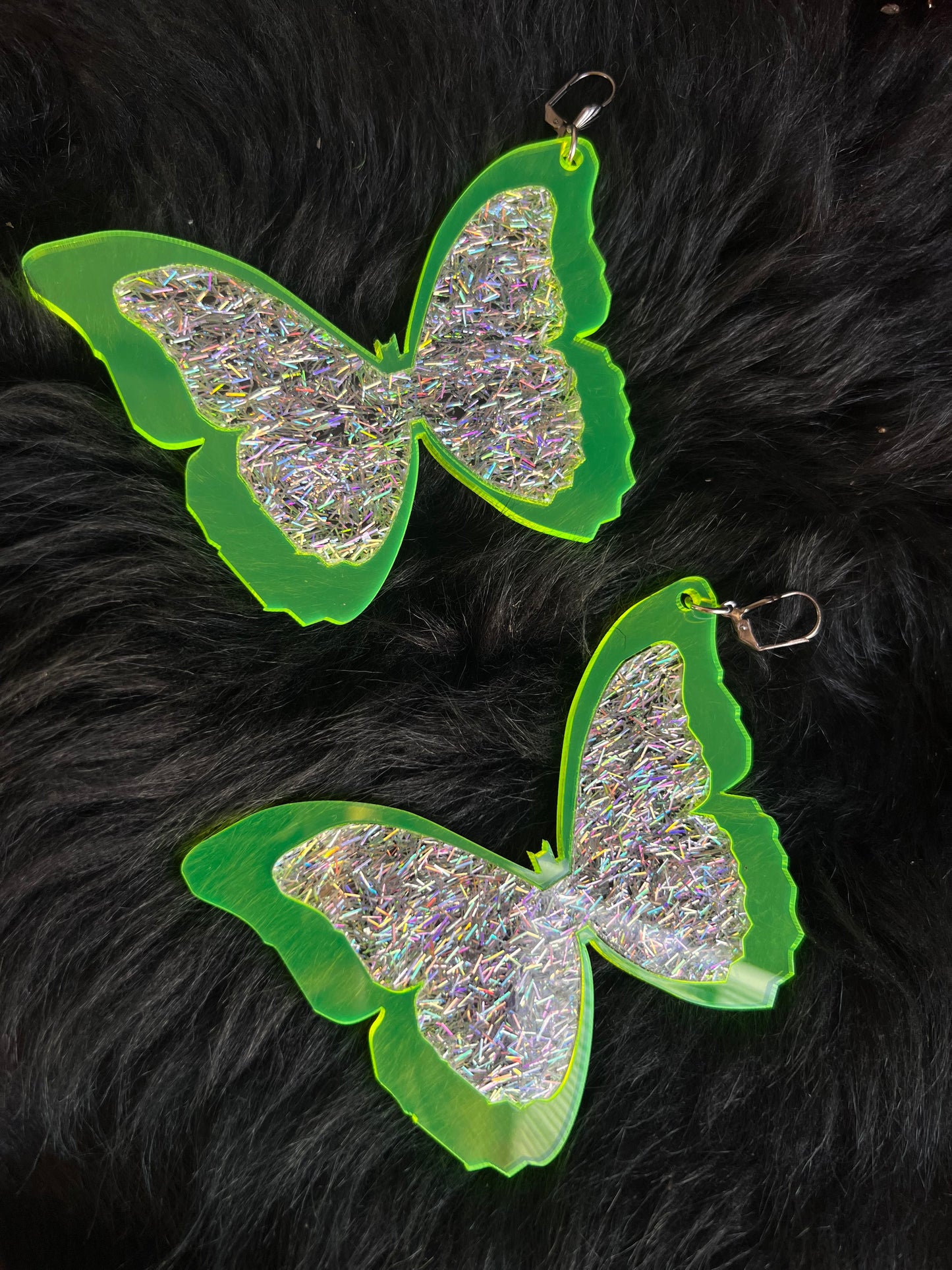 Neon Green & Glitter Butterfly Earrings 💚🦋💚