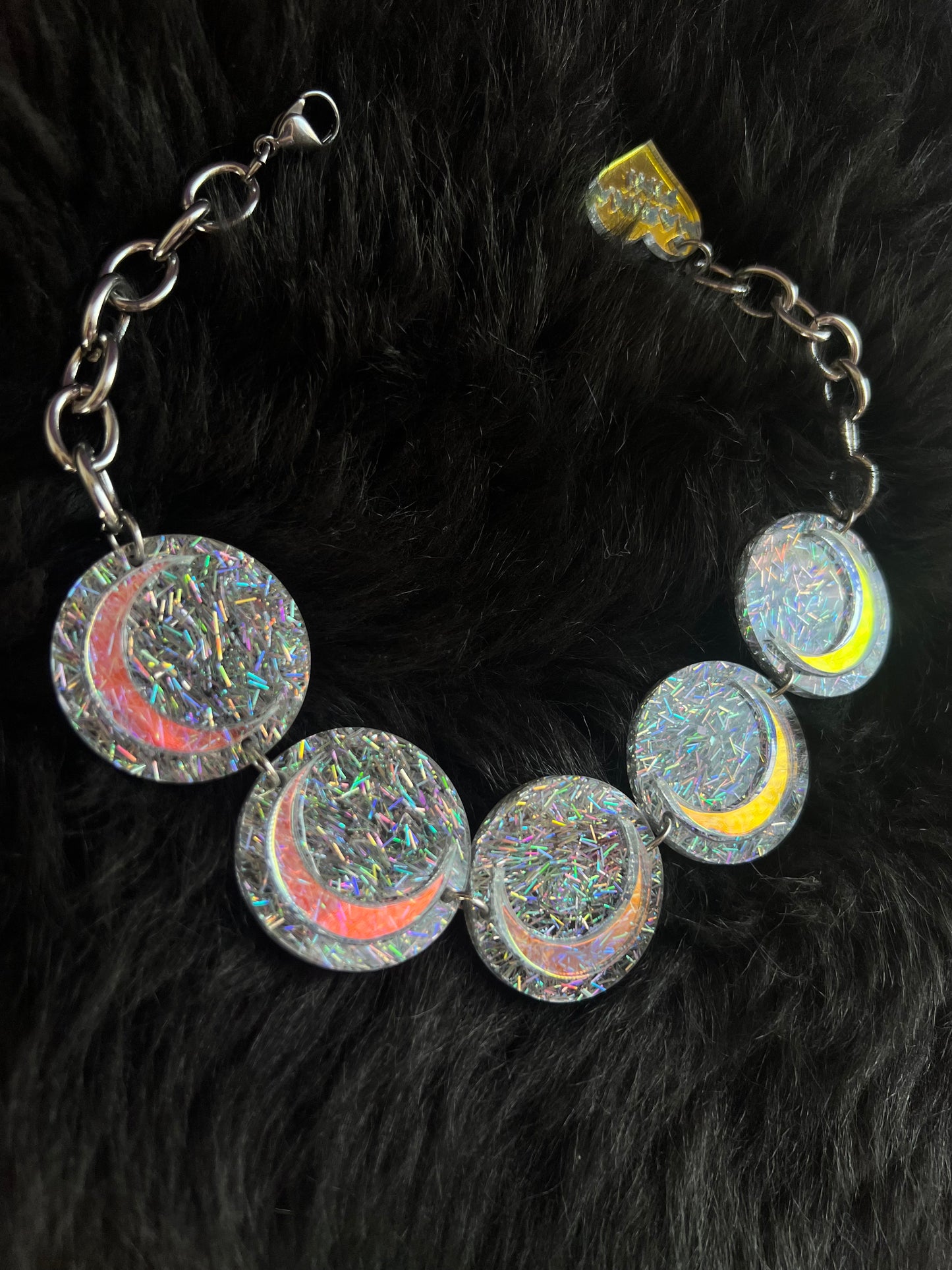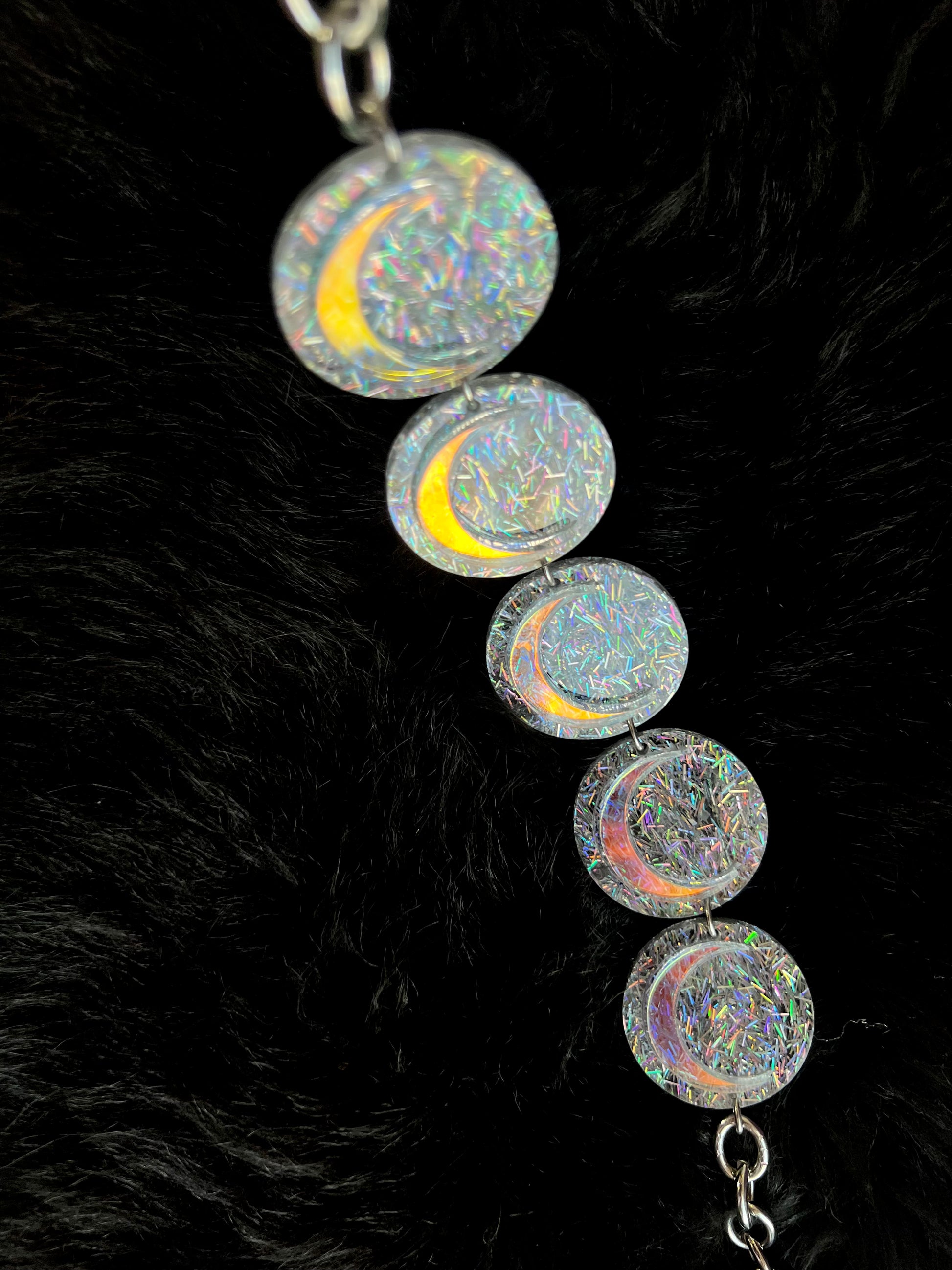 Silver hair glitter plexi with holographic half moons.layered to create a celestial goth vibe for any look 🌙🌙🌙🌙🌙🌙